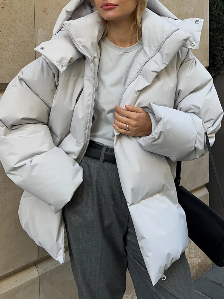 Womens Warm Hooded Bubble Puffer Jacket
