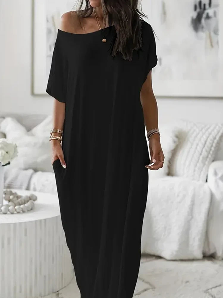 Women's Solid Color Batwing Sleeve Lounge Dress