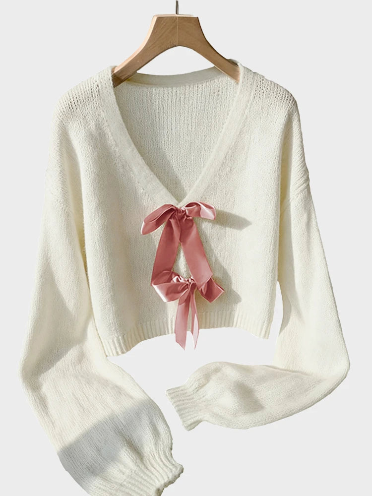 Womens Bow Tie Sweater V Neck Cardigan Sweaters