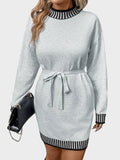 Casual Striped Mock Neck Color-Block Sweater Dress
