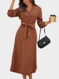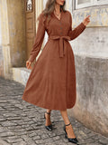 Corduroy V-Neck Dress – Versatile Commuter Office Style