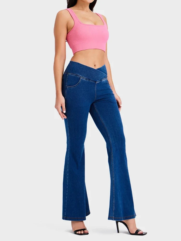 Crossover High Waisted Bell Bottom Jeans Yoga Pants Stretchy Flare Leggings With Pockets