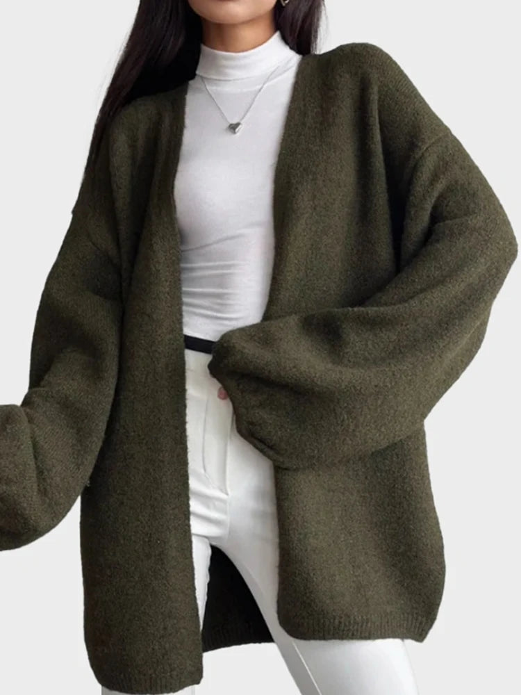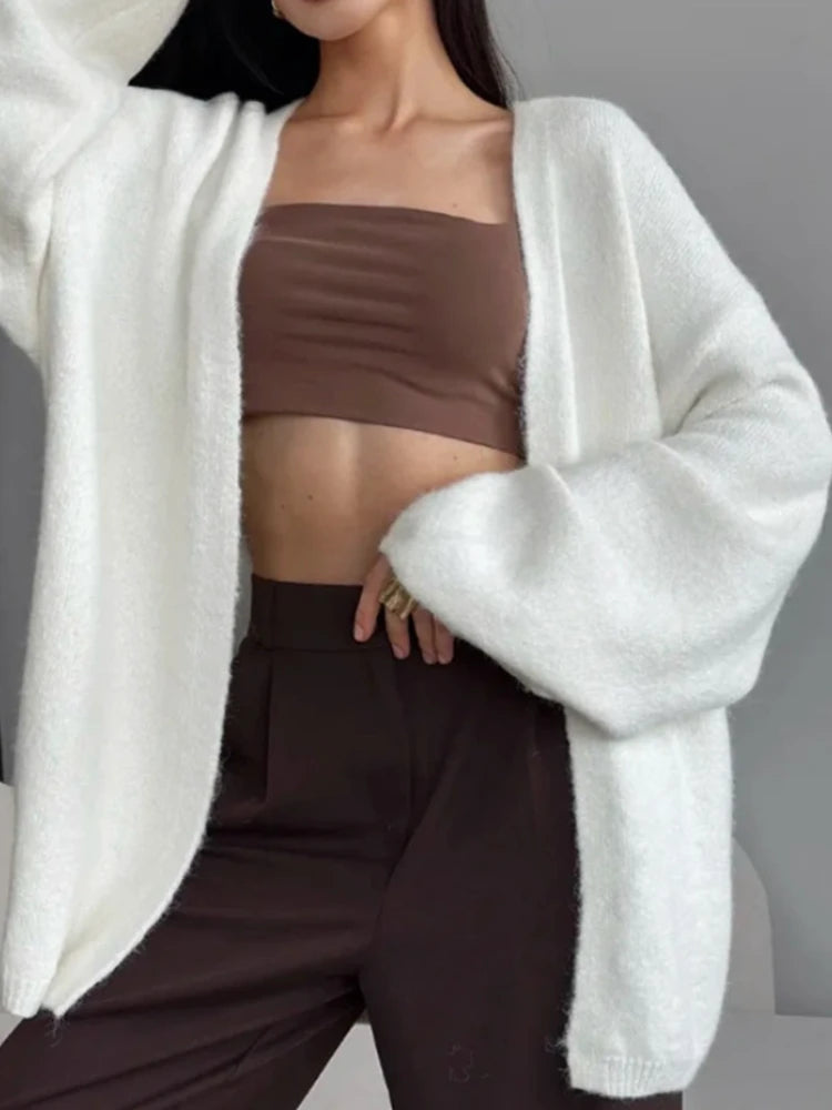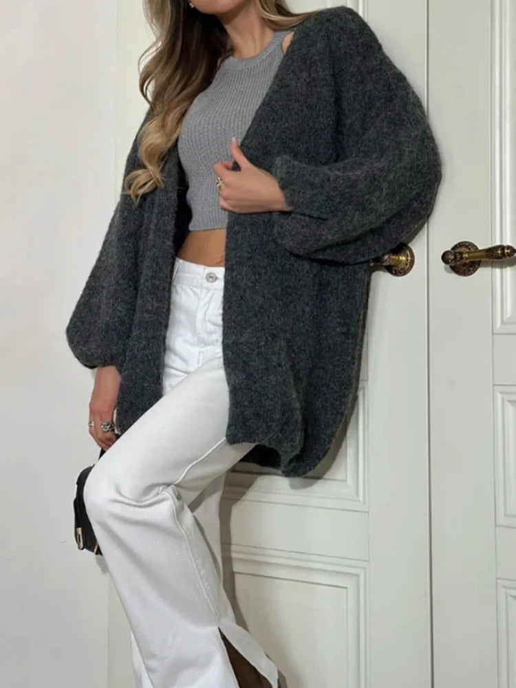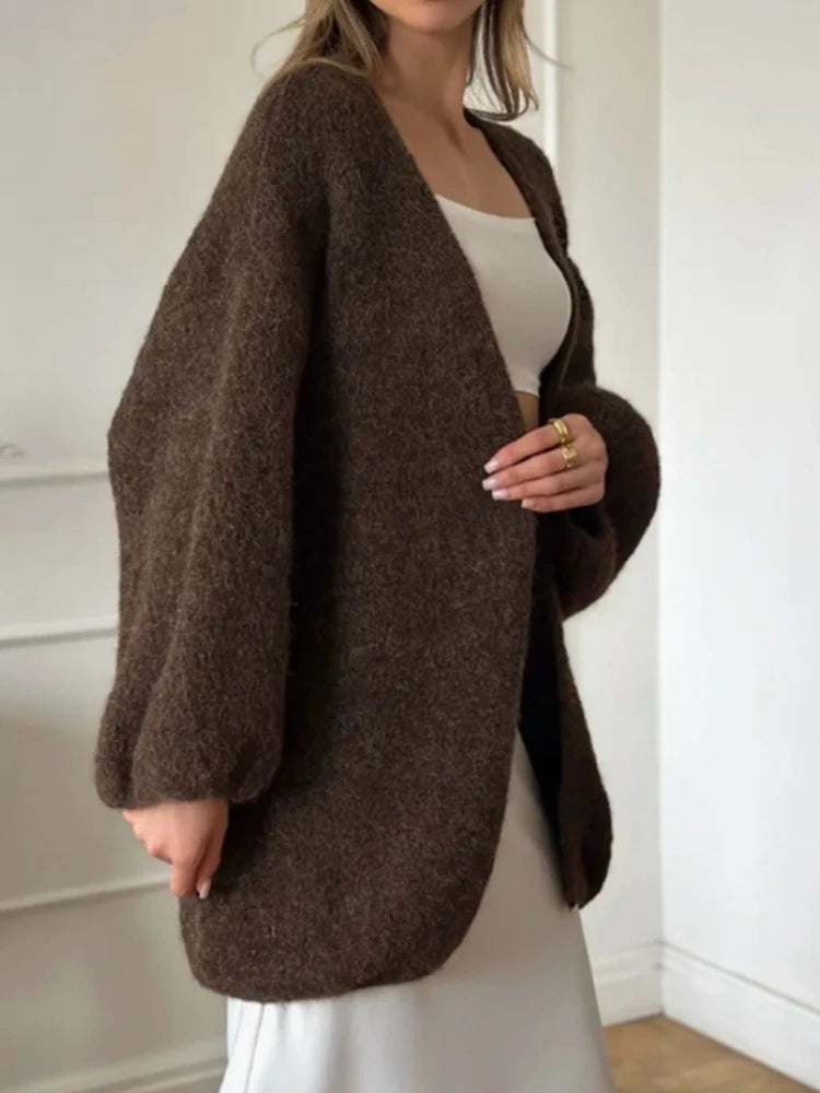 Faux alpaca cardigan loose lazy style