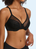 Floral Lace Plus Size Underwire Unlined Unpadded Minimizer Full Coverage Bra