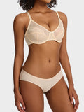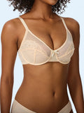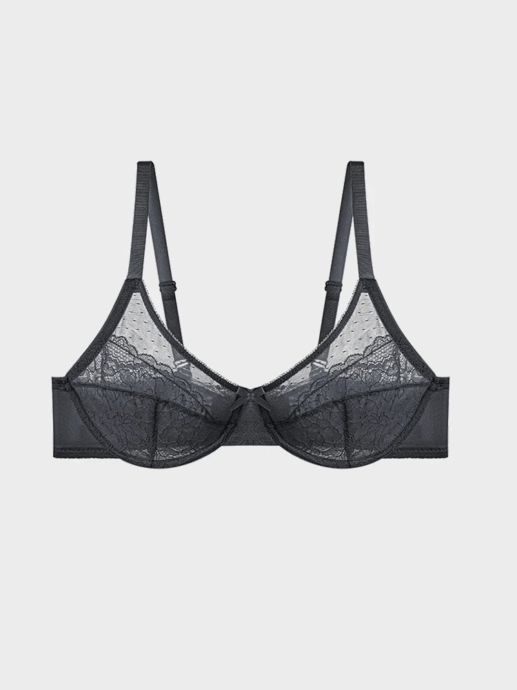 • Full-coverage lace cups with underwire provide lift and support without padding.
