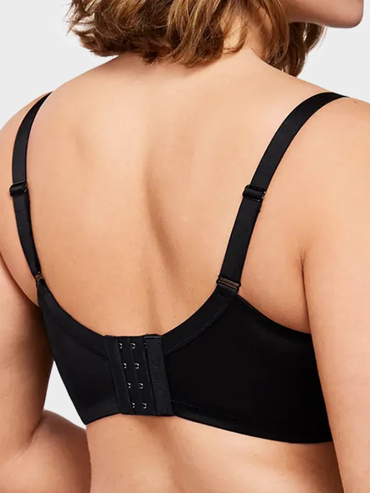 • Plus-size construction with wide straps and reinforced side wings offers superior all-day support.