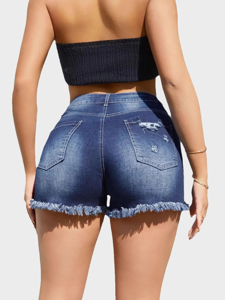 Frayed Hem Ripped Denim Shorts