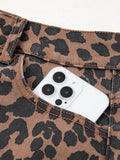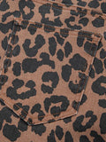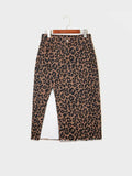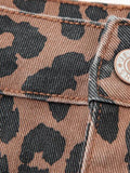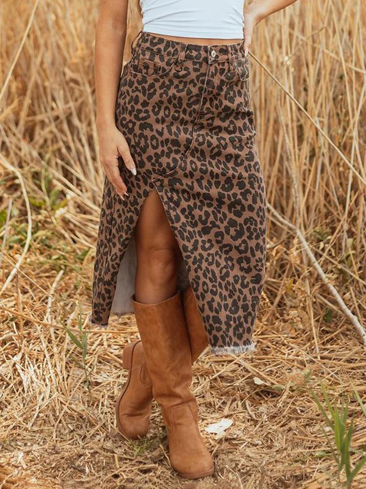 Women's High-Waisted Leopard Print Denim Skirt with Slit