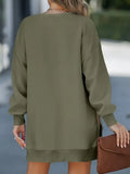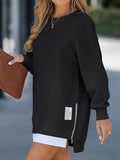 Long Sleeve Drop Shoulder Pullover Casual Zipper Side Slit Top