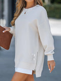 Effortlessly chic, this long sleeve drop shoulder pullover combines relaxed comfort with modern design. Featuring a casual side slit with zipper detail, it adds a subtle edge to any outfit while maintaining a clean, versatile silhouette.