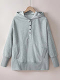 This oversized hoodie combines comfort with style. The ribbed hem and soft cotton blend keep you warm, while the button V-neck adds a fashionable touch and makes it easy to put on and take off.