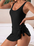 - Long torso swimsuit: the skirt is long enough to cover places and to be modest, the tie knot at the hem makes it to be feminine and cute