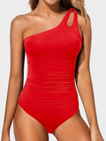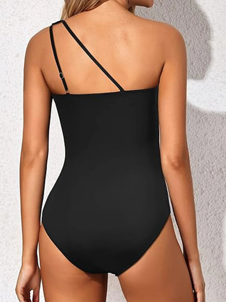 One Shoulder Swimsuit with Tummy Control & Keyhole Detail