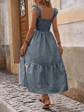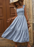 Package Includes: 1 × Retro Smocked Plaid Maxi Dress