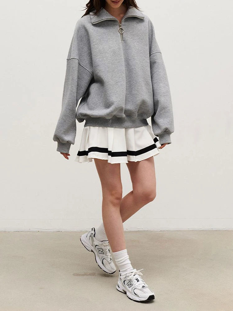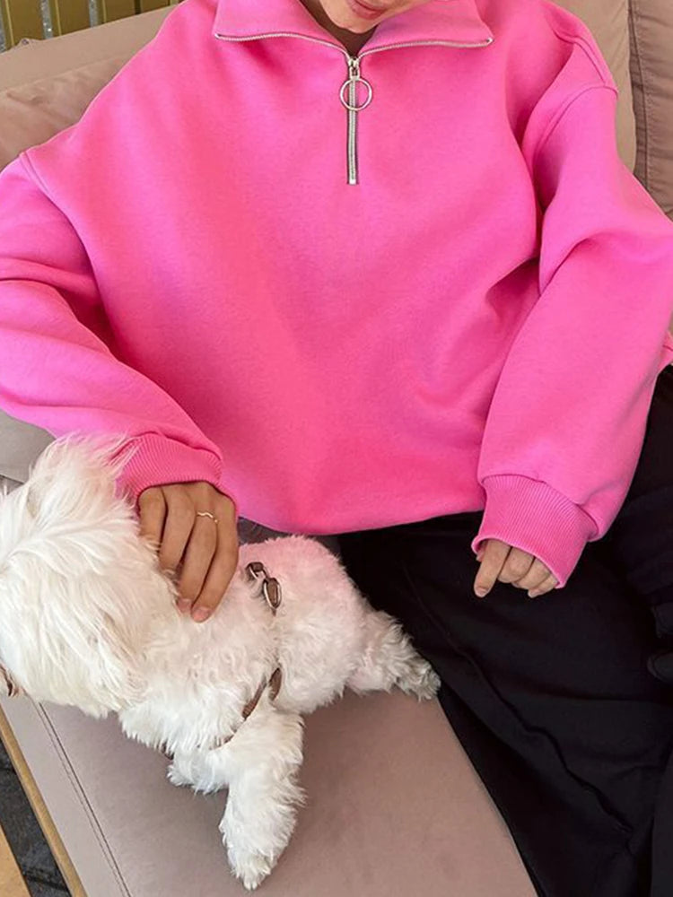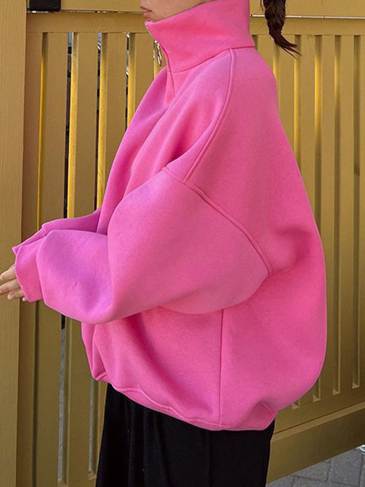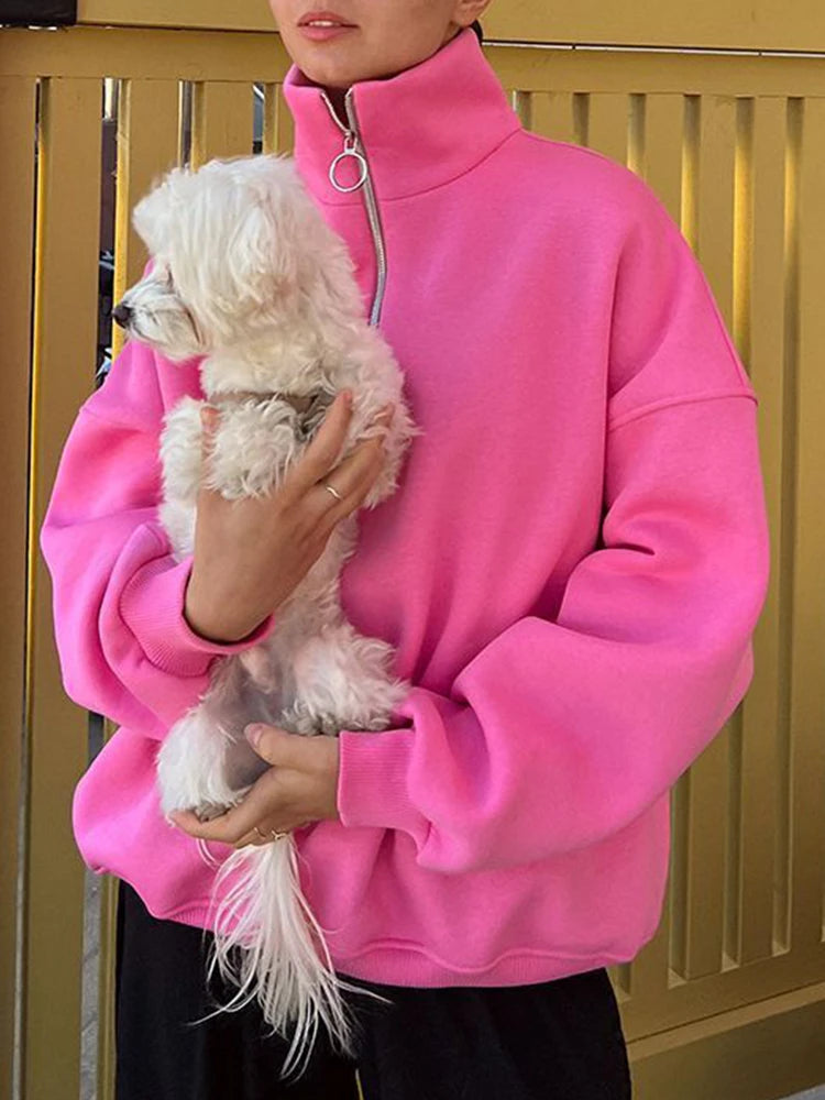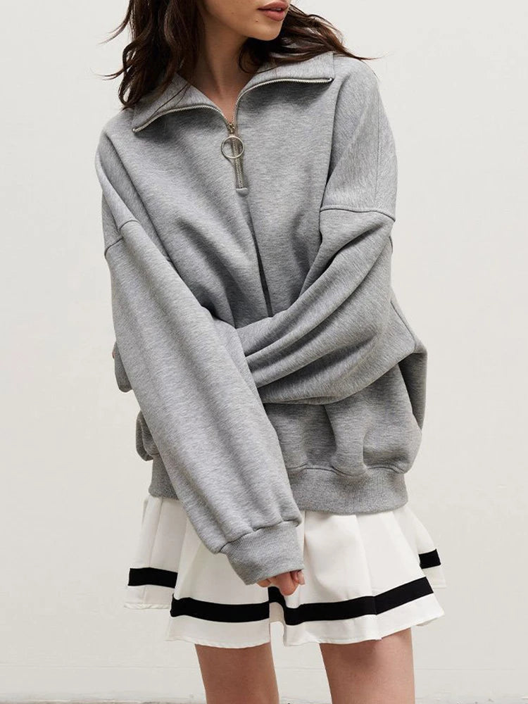 Women's Trendy Oversized Zip-Up Collared Sweatshirt