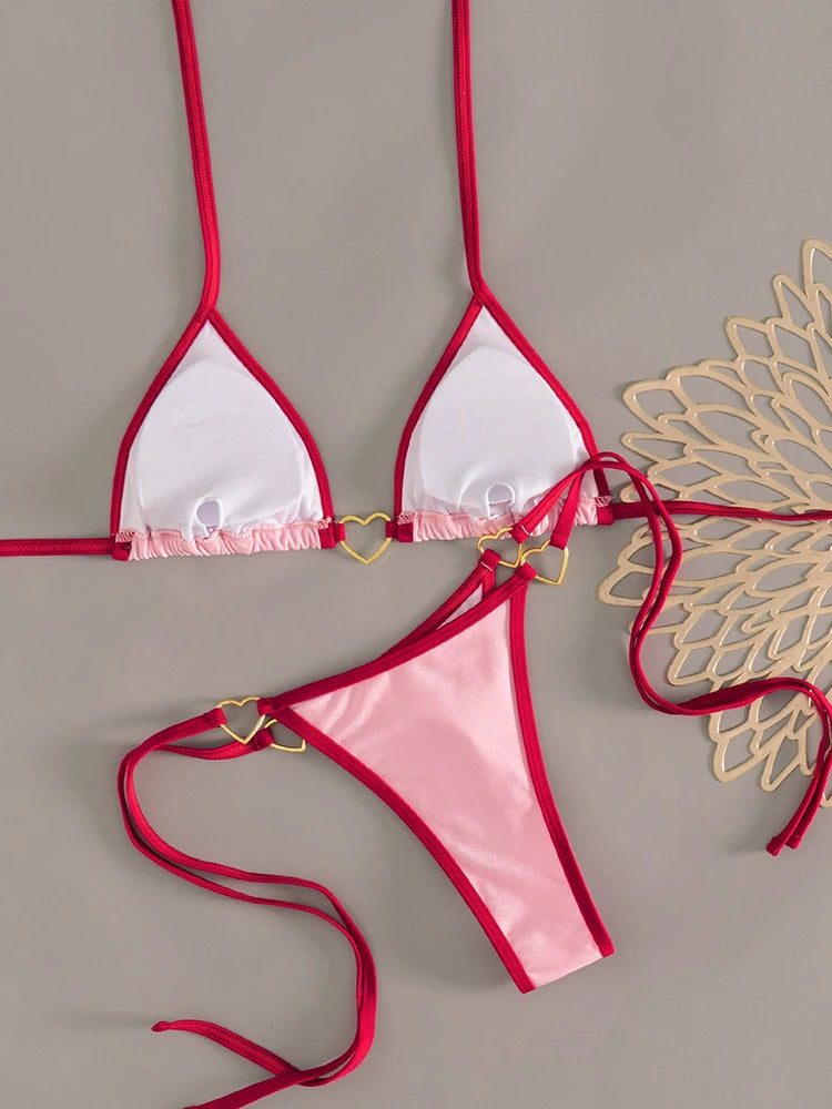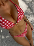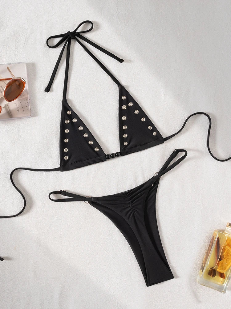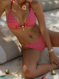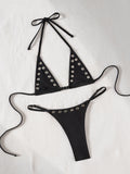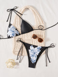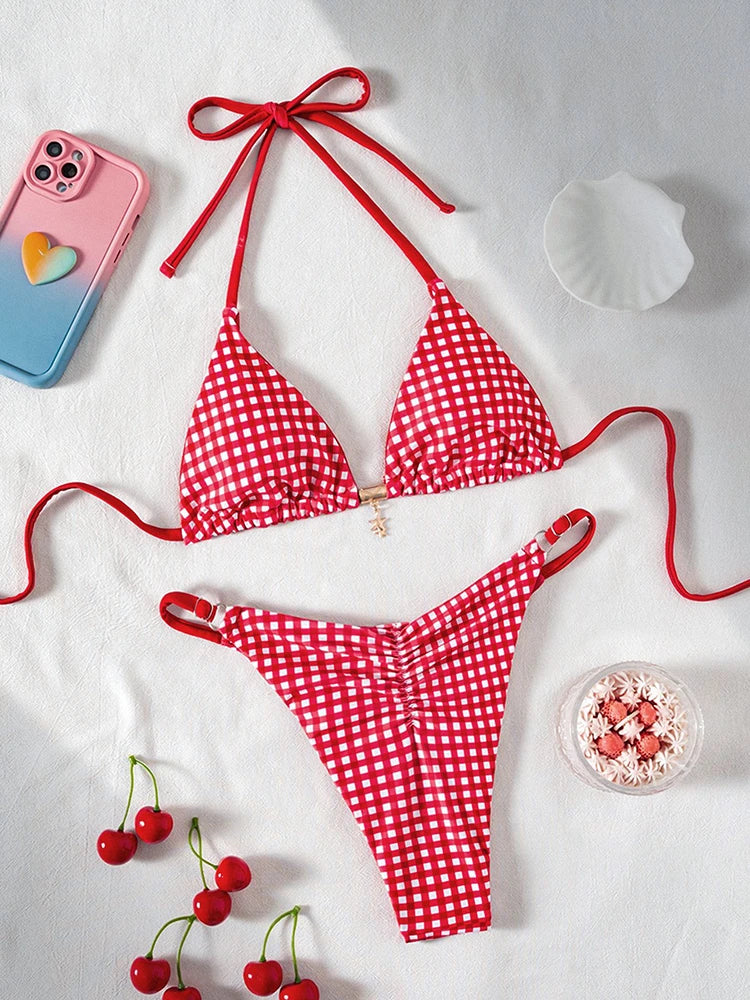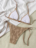 • Allover print, halter neck, tie back, wireless bra, tie side, 2 piece bikini set.
