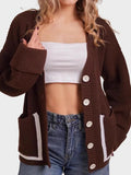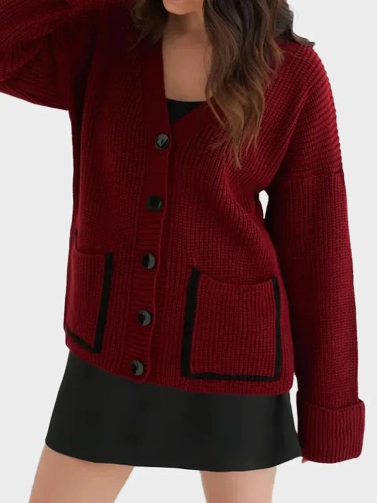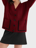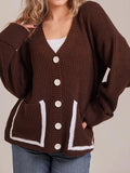 V-neck pocket contrast knit cardigan