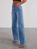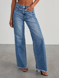 Wide Leg Side Seam Stitching Frayed Hem Jeans