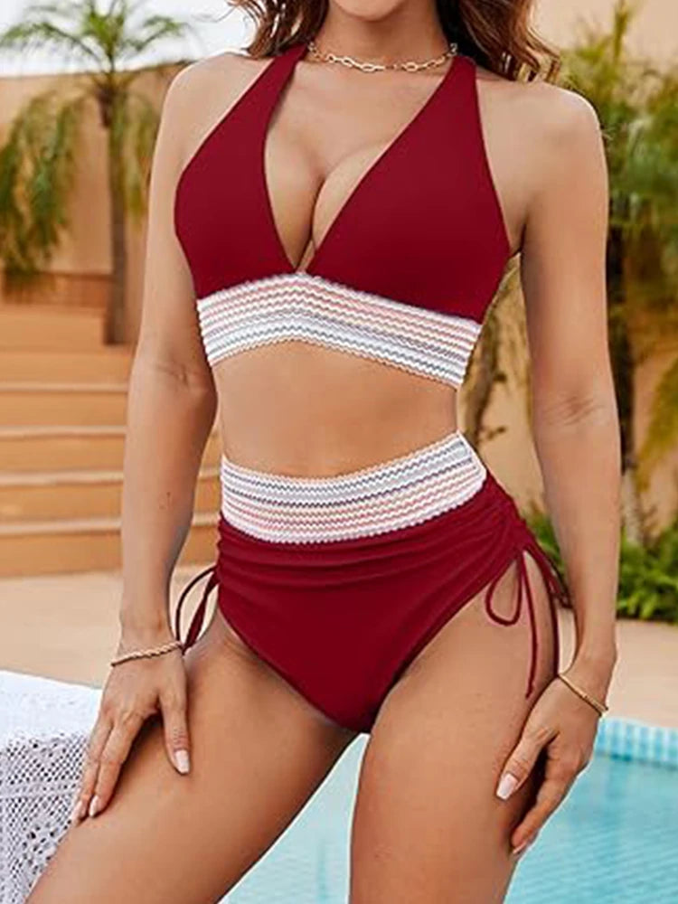 • The color block, contrast trim and v neck design make you stand out on the beach or by the pool.