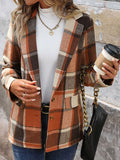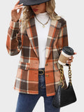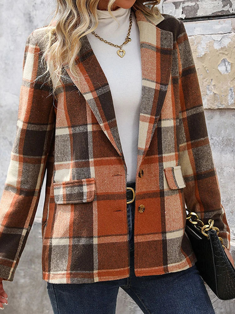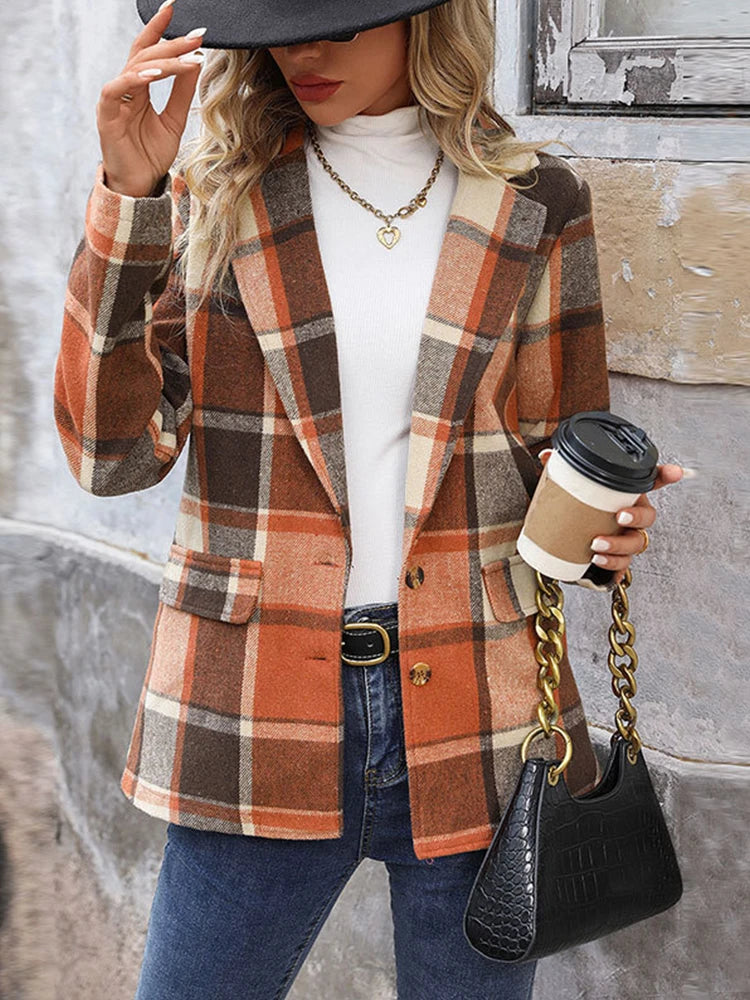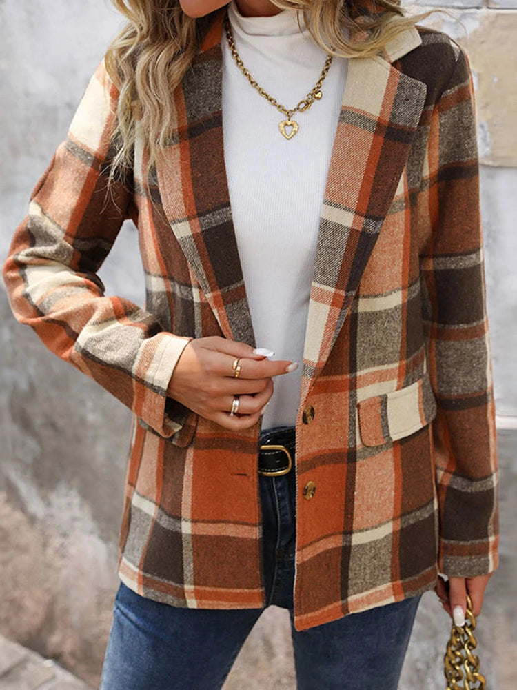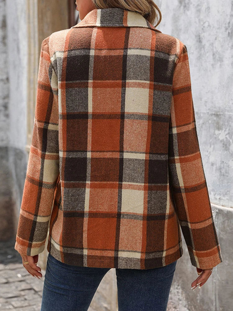 Women’s Plaid Classic Lapel Collar Double Breasted Open Front Blazer