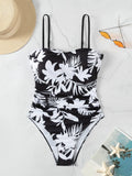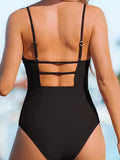 Women Swimsuit One Piece Bathing Suit Square Neck Cutout Back Tummy Control with Adjustable Spaghetti Straps