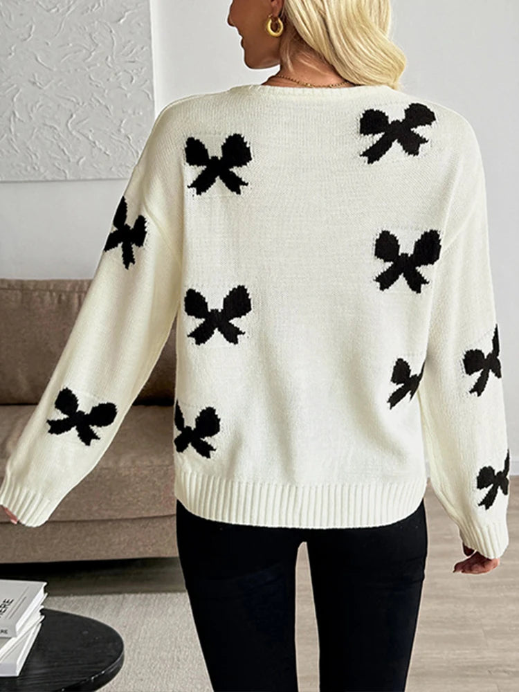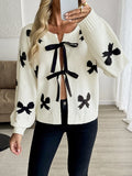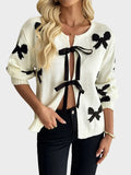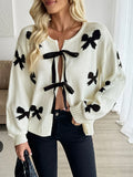 - Design: Bow graphic, long sleeve, v neck, tie front, knitted, y2k cardigan for women
