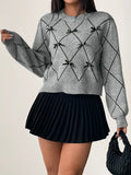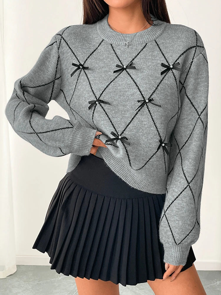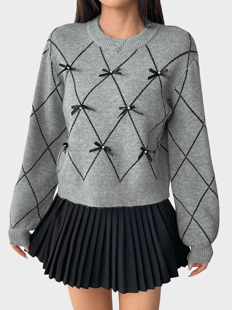 Women's Bow Sweater Christmas Knit Crewneck Pullovers