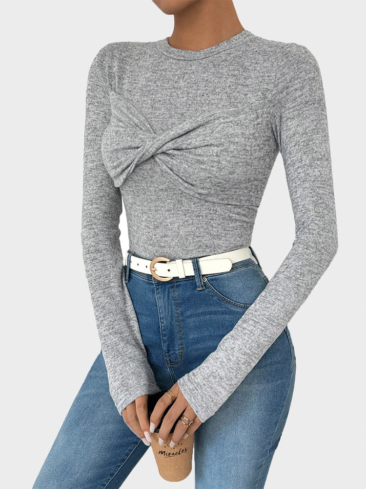 Women's Casual Long Sleeve V Neck Soft Twist Tee Top