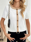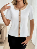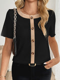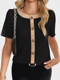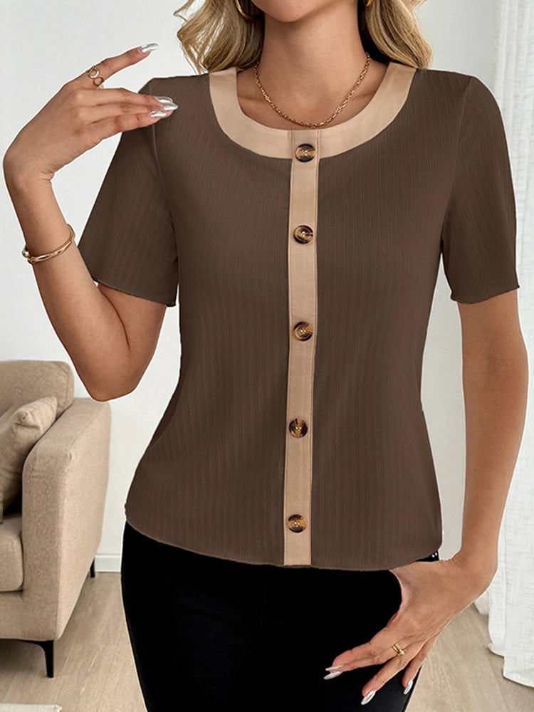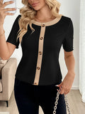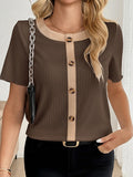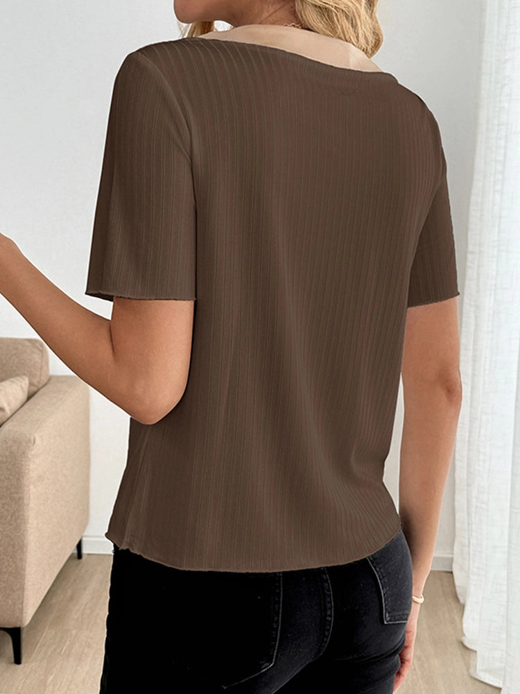 - Features:The womens casual ribbed knit t shirts feature contrast trim,ribbed knit,short sleeve,button down,crew neck,loose fit.These design details give the summer knit tops for women a standout piece for trendy look.