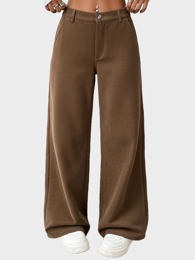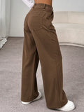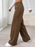 - Casual women wide leg high rise corduroy pure color pocketed stem-pipe streetwear casual pants