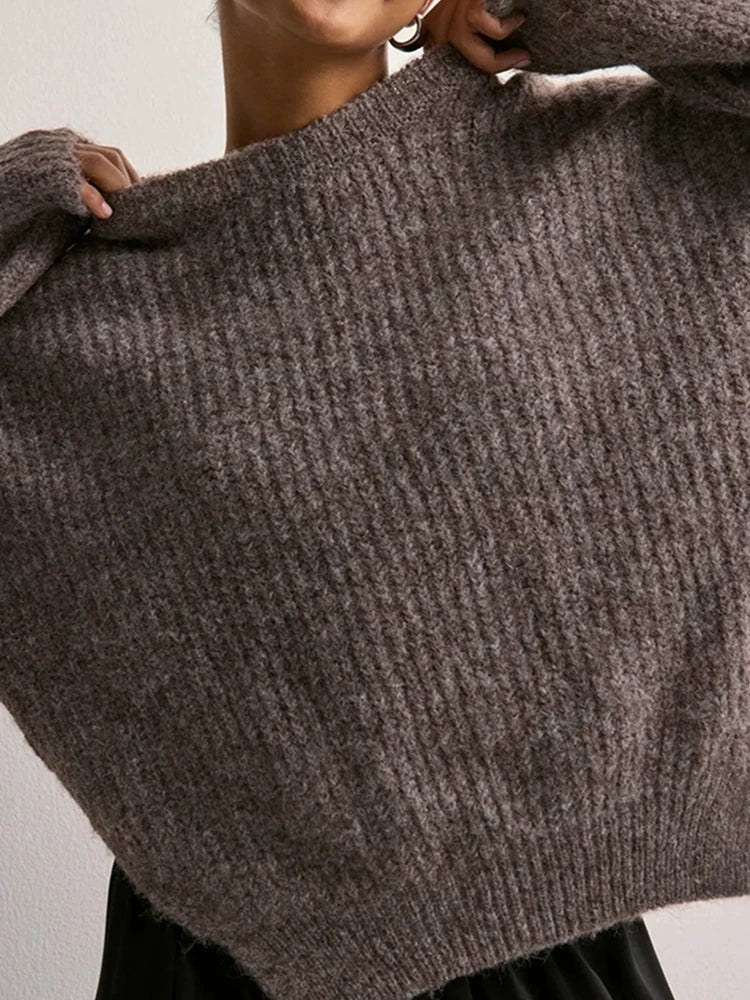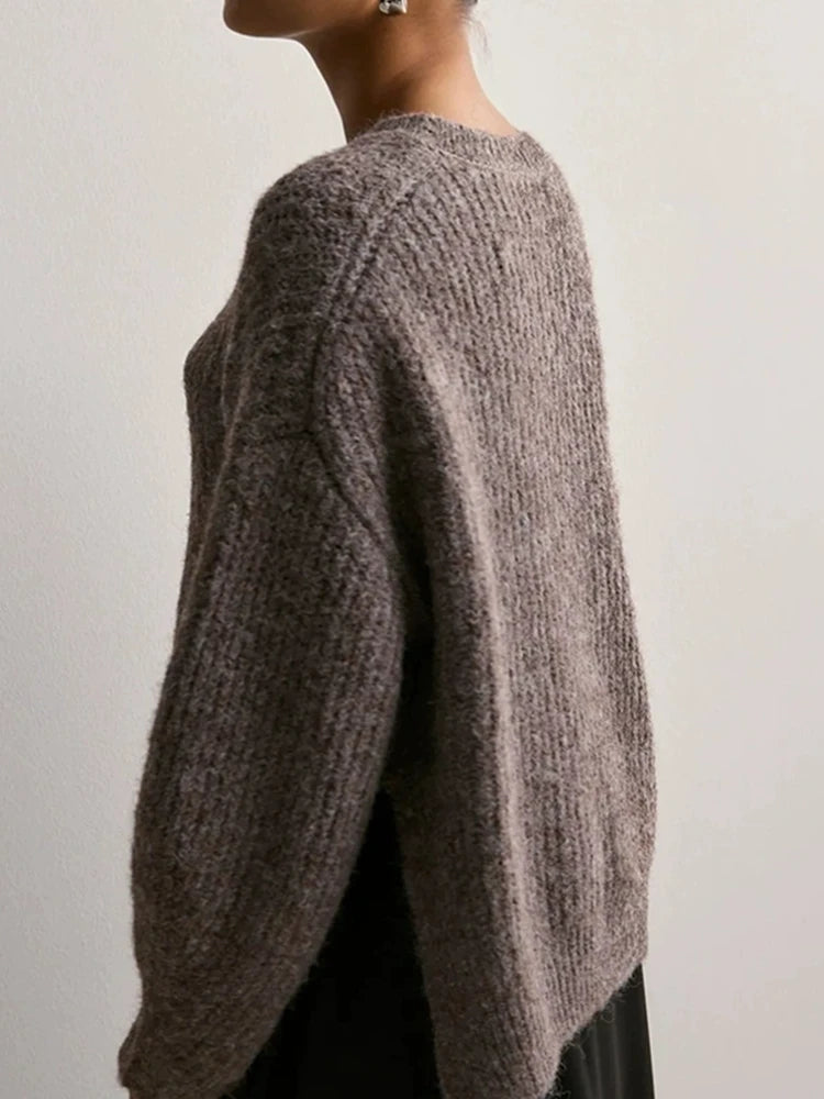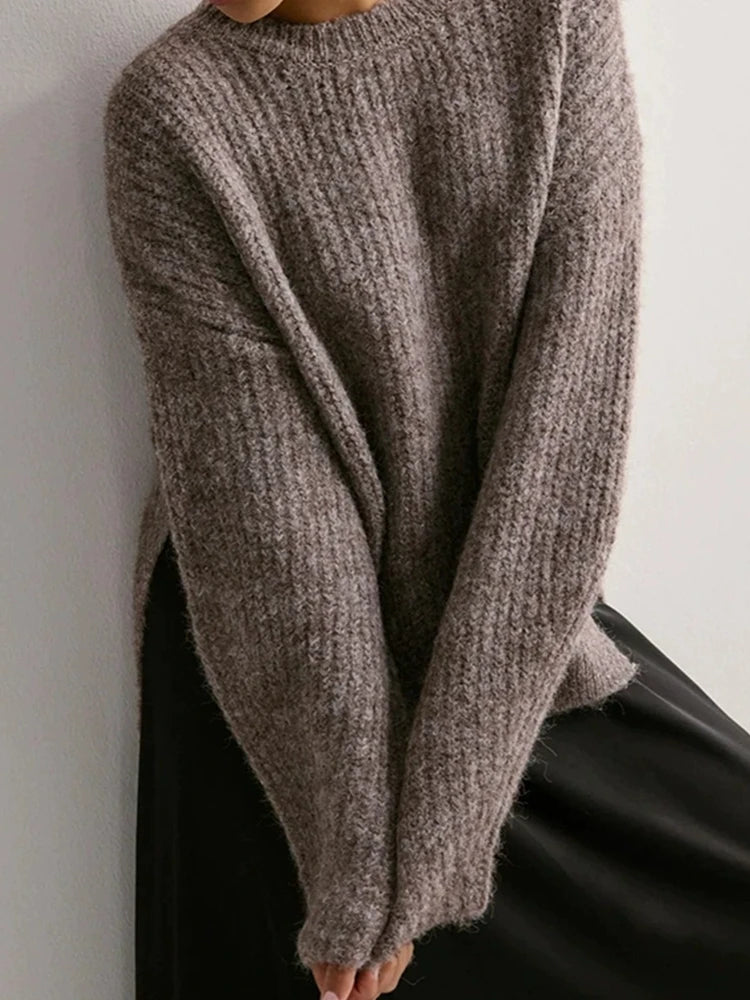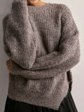 Women's Crew Neck Knitted Hem Loose-Fit Long-Sleeve Sweater