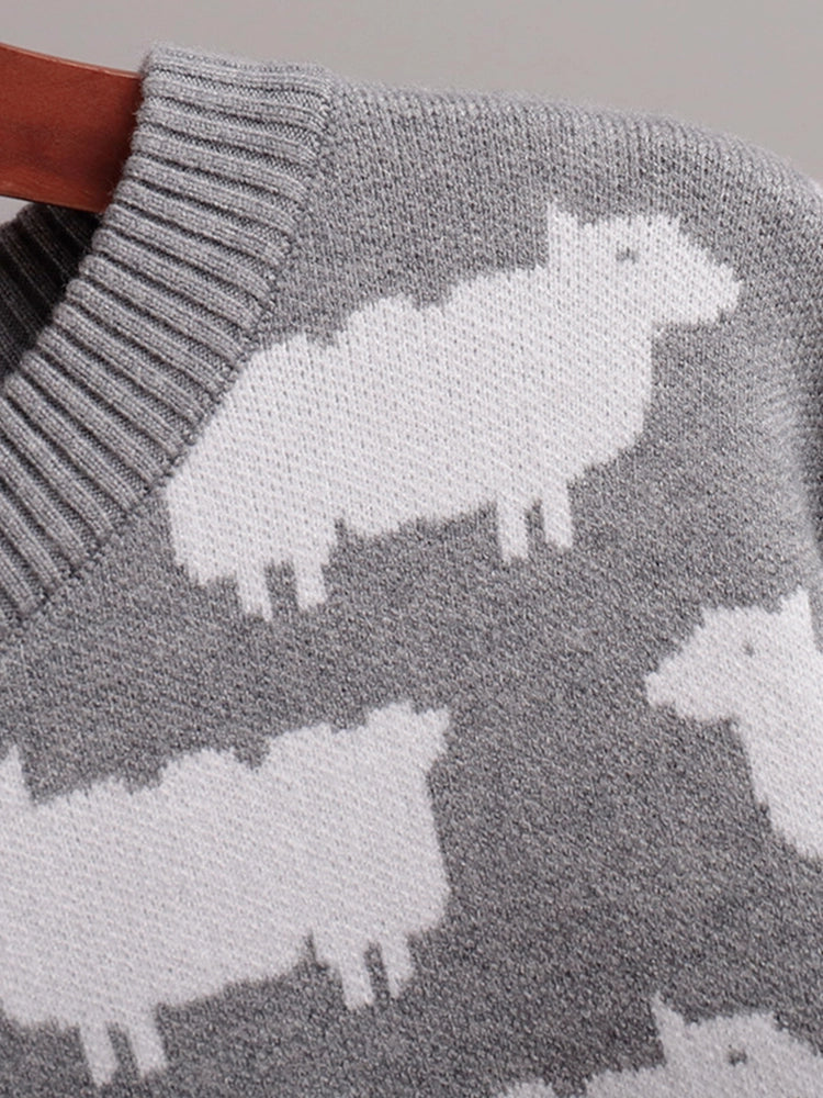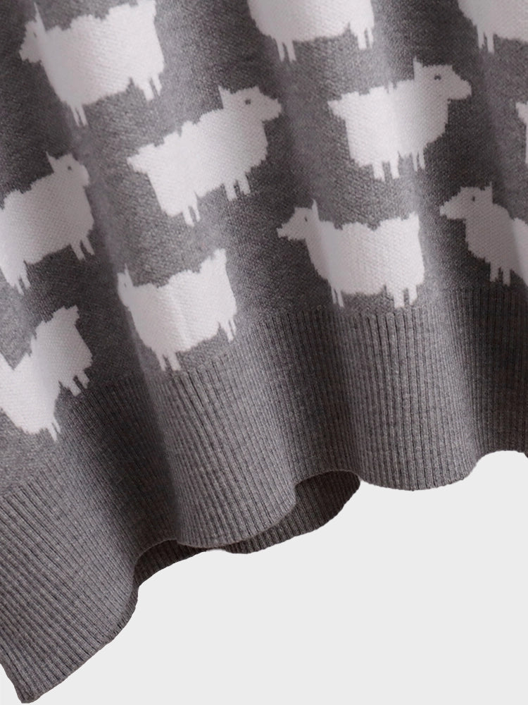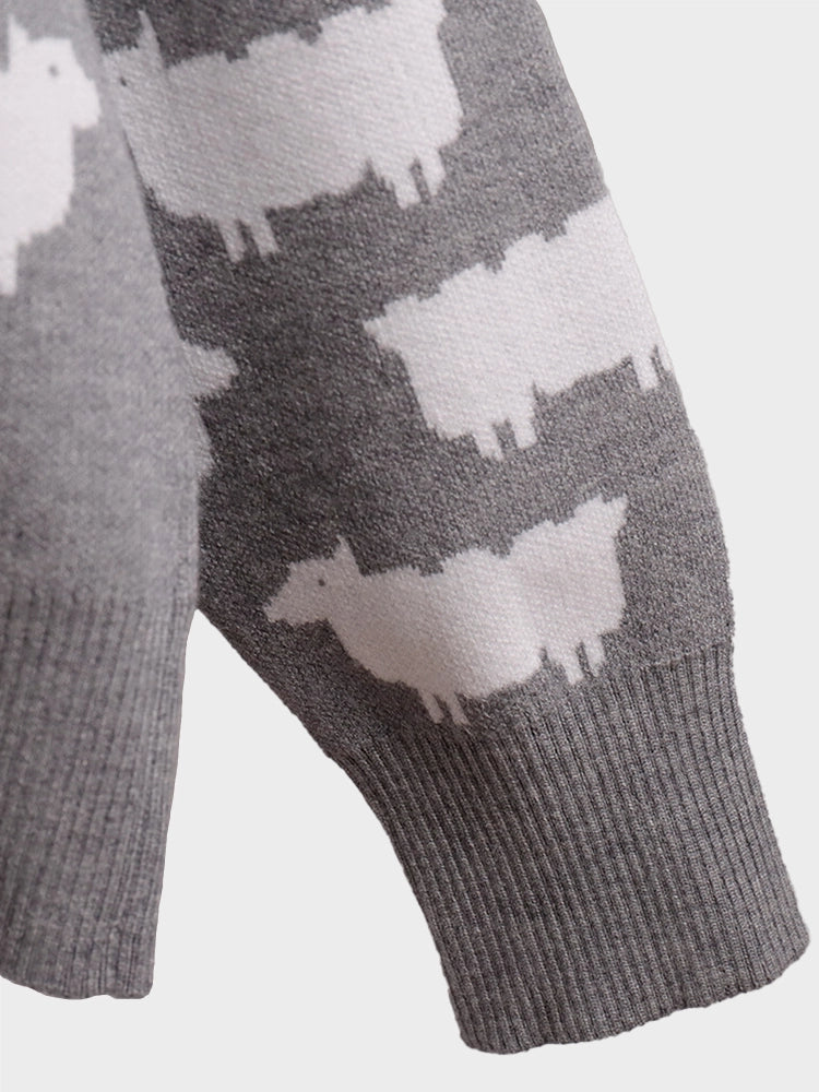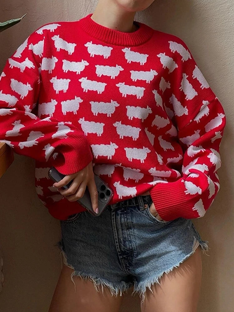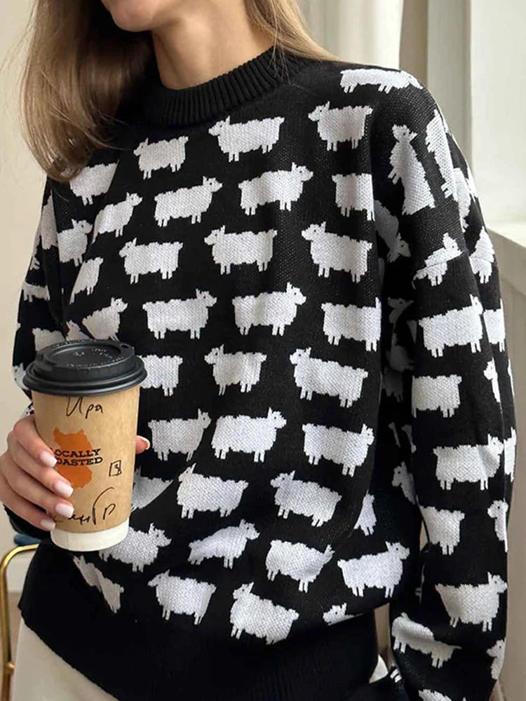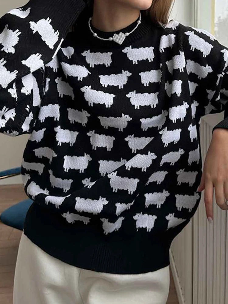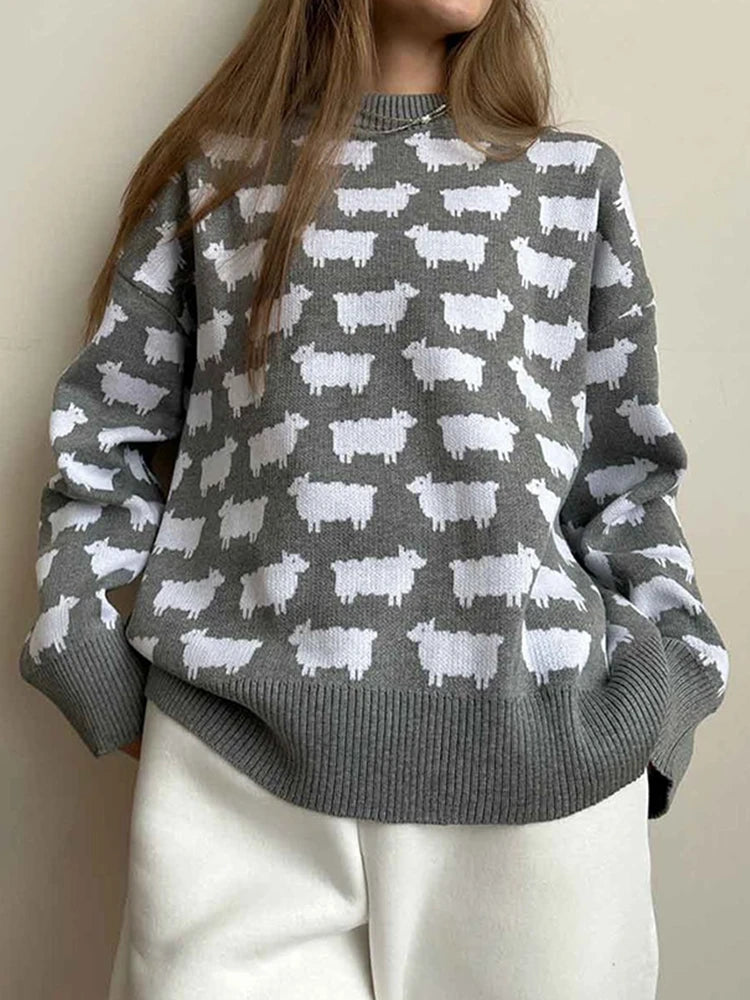 Women's Crew Neck oversize Alpaca Print Sweater