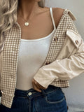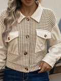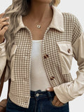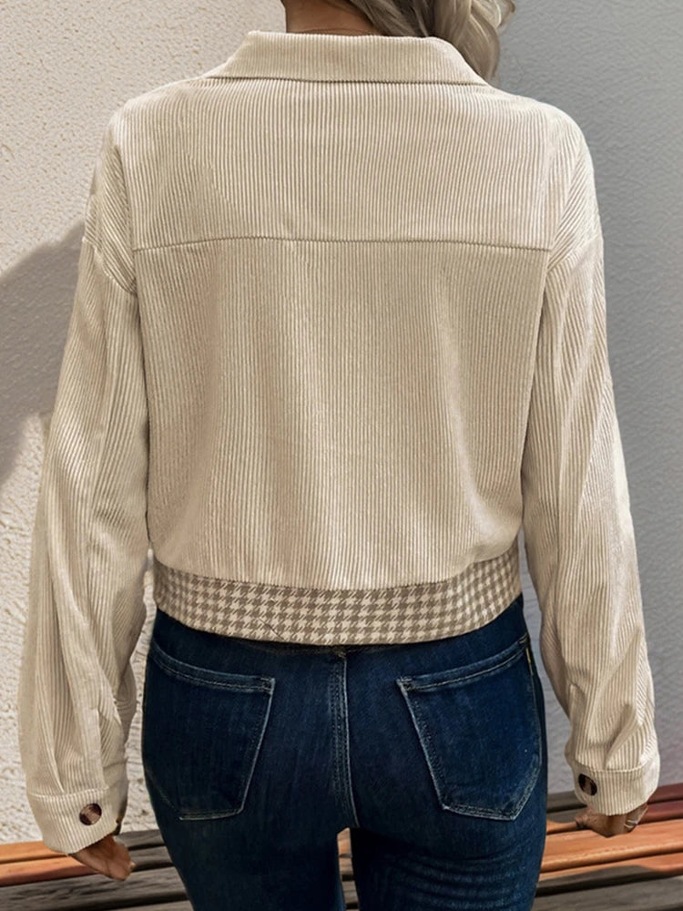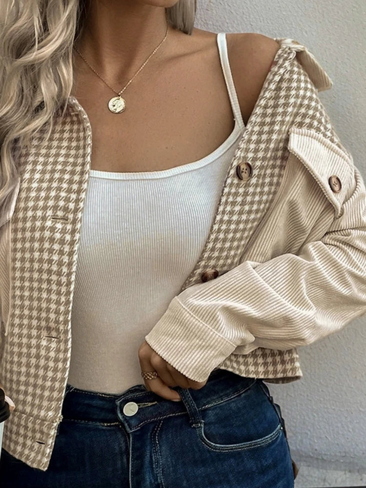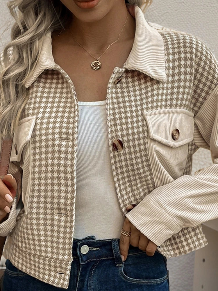Womens Fall Cropped Corduroy JacketsHoundstooth Coat with Pocket