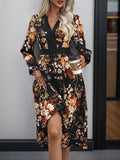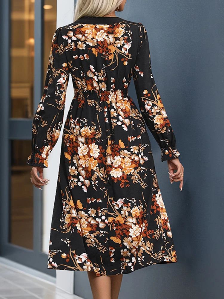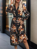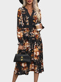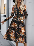 Womens Fall Trendy A-Line V Neck Floral Midi Dress