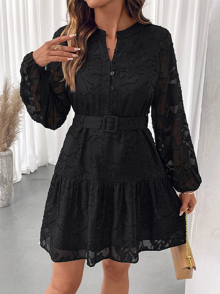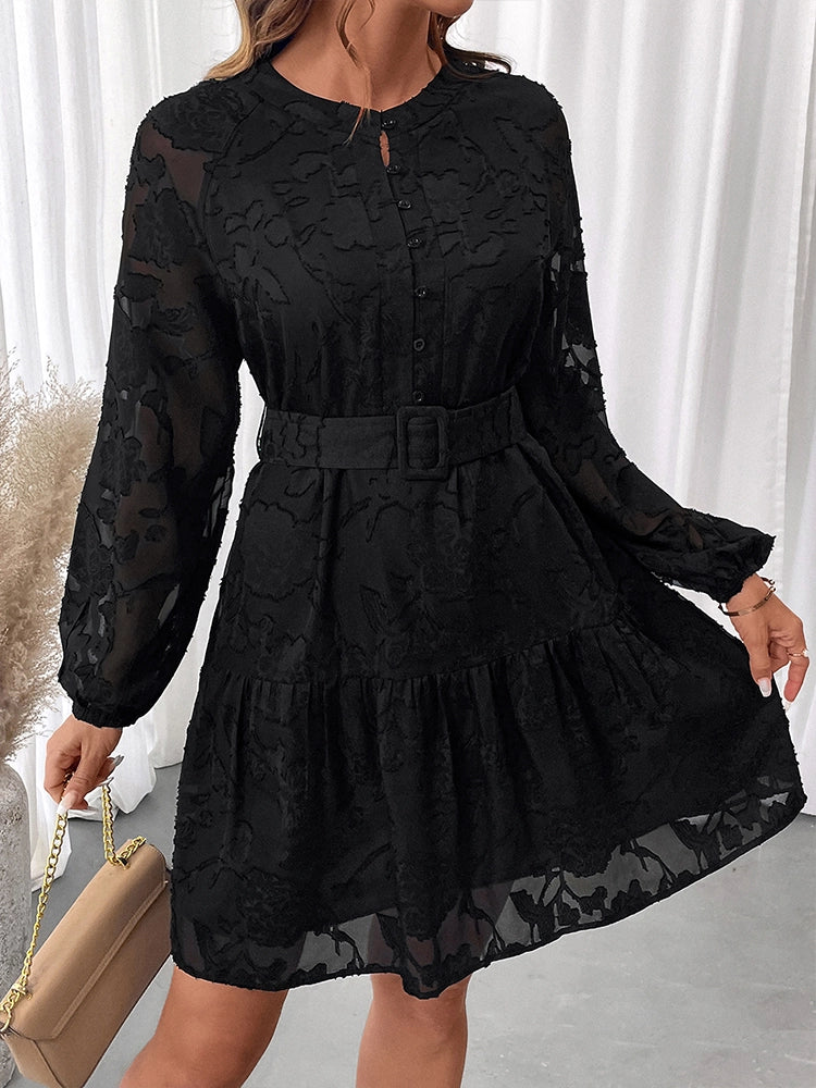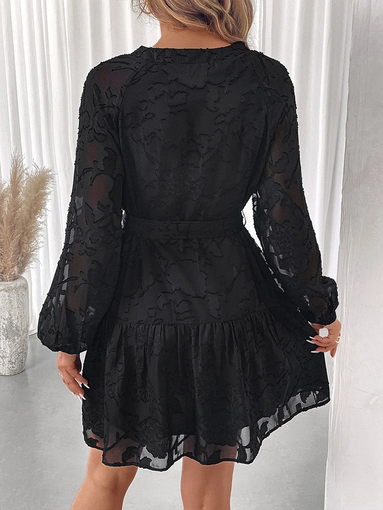 Women's Floral Jacquard Mesh Gothic Dress