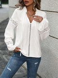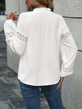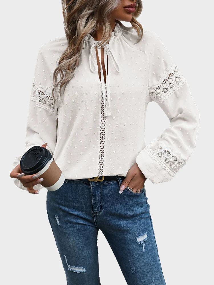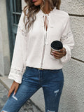 Women's Frill Mock Neck Self Tie Shirred Ruffle Long Sleeve Blouse