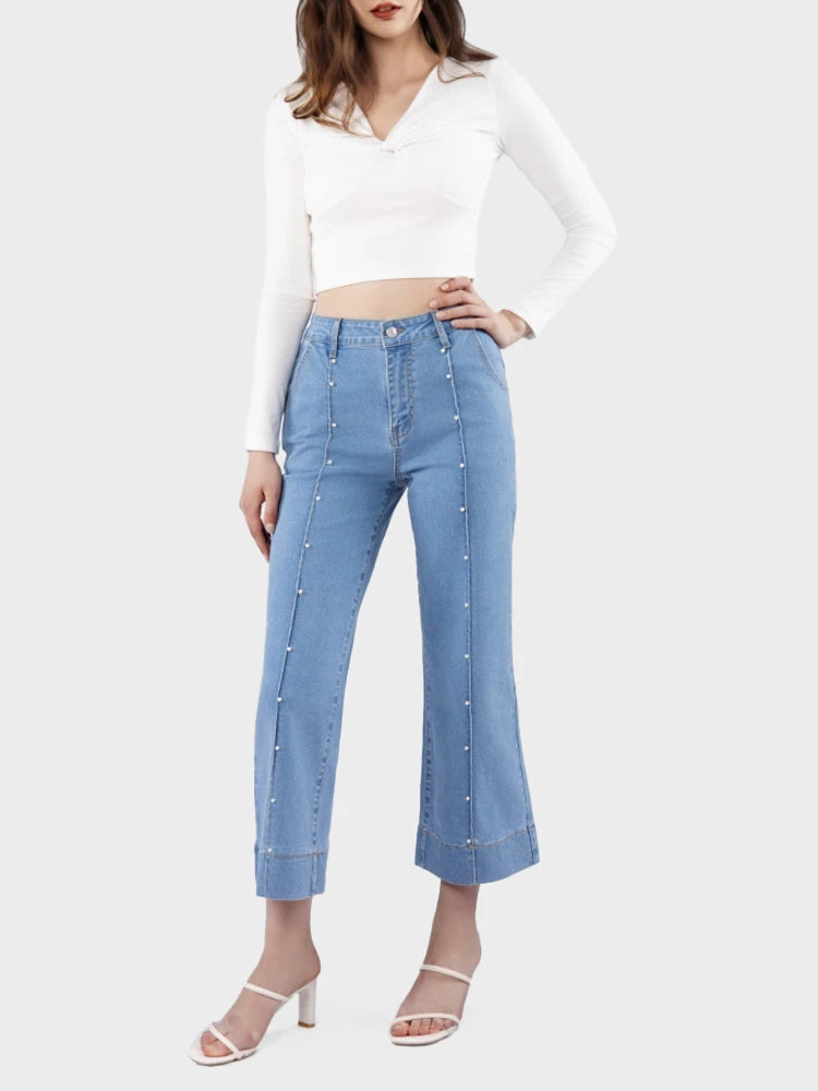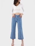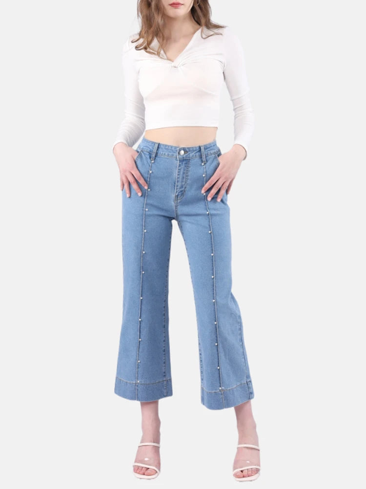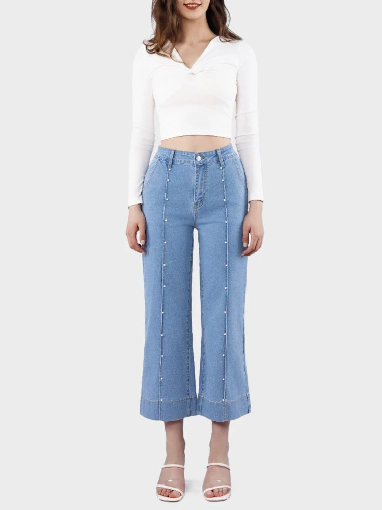 - Features: This wide leg jeans features five functional pockets;high waisted;crop style;zipper and button closure