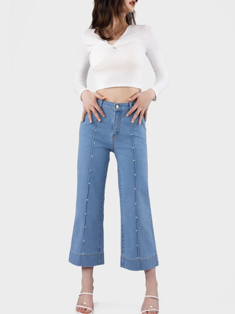 - Material: Astylish cropped wide-leg jeans for women are made from soft, stretchy denim that feels comfortable and breathable. They're comfy and have a trendy short length, perfect for warm days