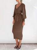 Womens Knit V Neck Tunic Long Sleeve Fall Sweater Dresses