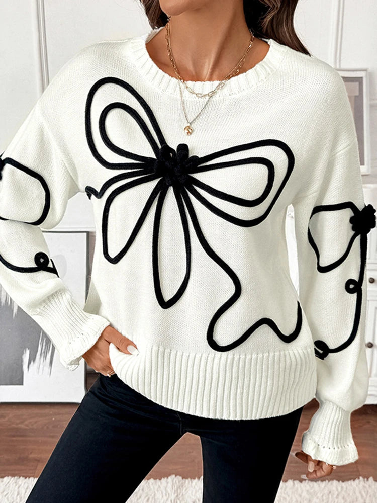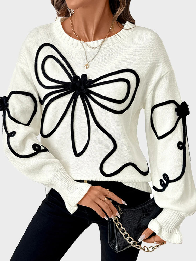 Womens Knitted Pullover Bow Sweater