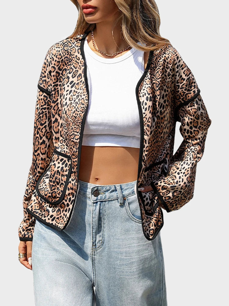 Women's Leopard Cardigan Sweater V Neck Cardigan