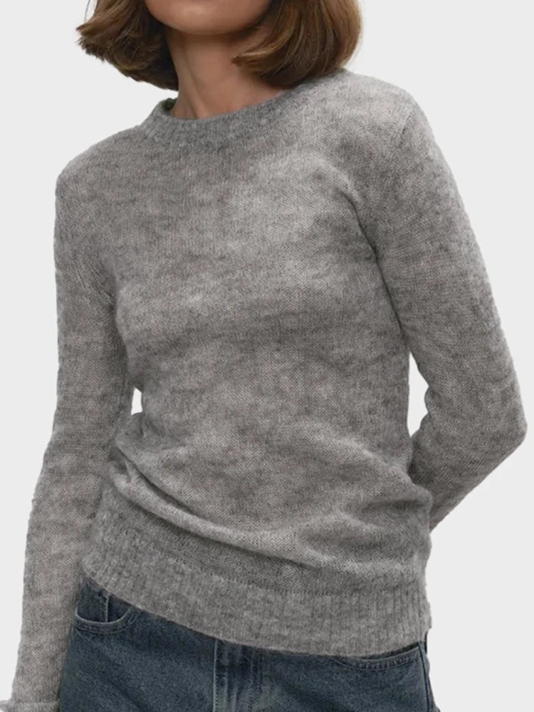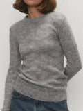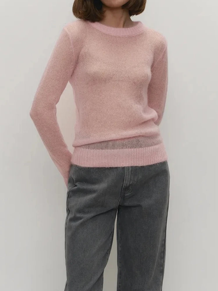 women's Lightweight Knitted Mohair Sweater Boat Neck Sheer