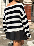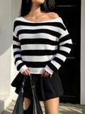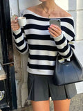 Womens Off The Shoulder Sweater 2025 Fall Winter Striped Sweater