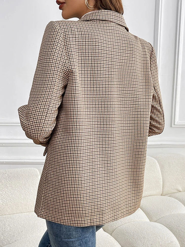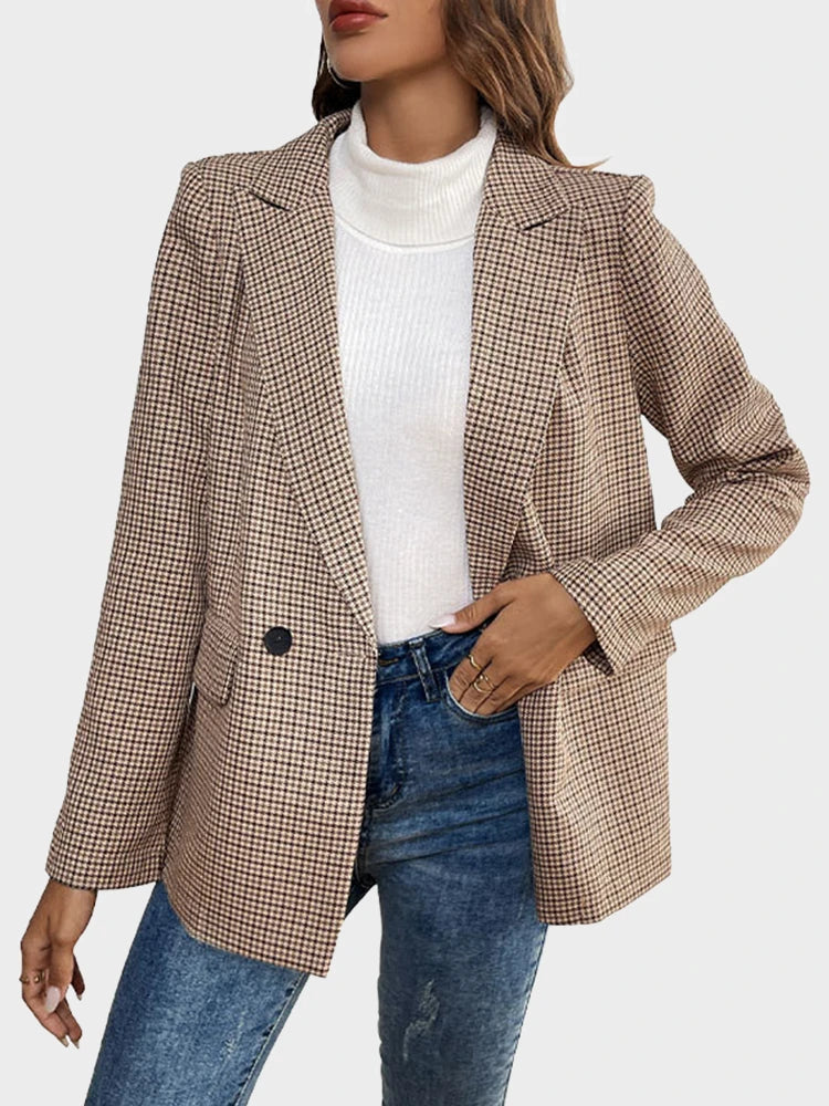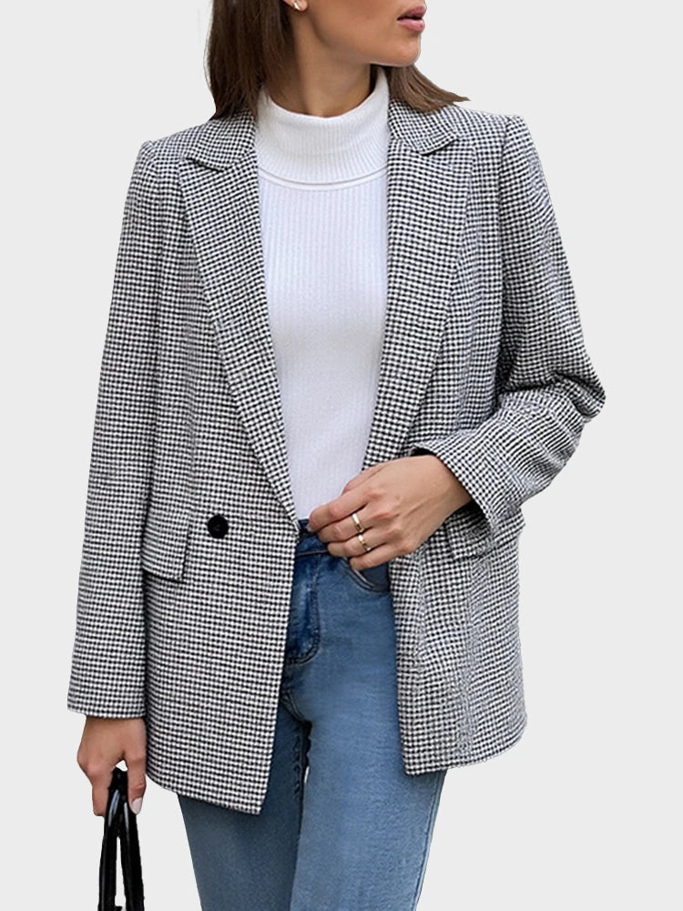 Women's Plaid Houndstooth Blazer Jacket