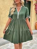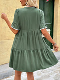 Womens Resort V Neck Short Sleeve Lace Ruffle Mini Dress