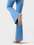 Women's Retro Flare Jeans - Distressed High Waisted Bootcut Bell Bottoms, Slim Fit Stretch Denim Pants