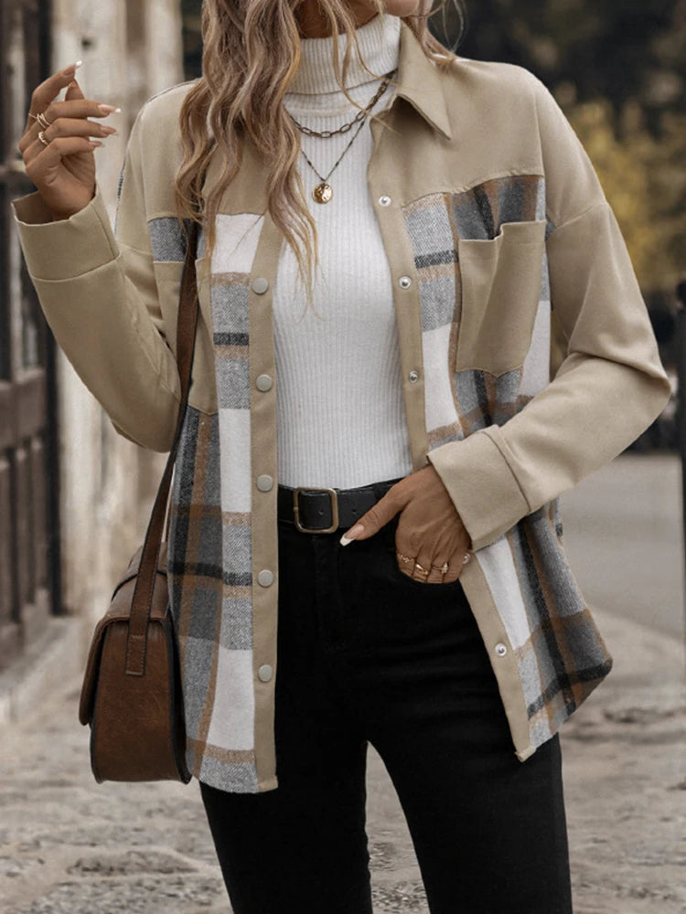 - Design: Basic button up womens flannel shirt, It can be worn alone or as a stylish womens shacket, buttoned up or open and not feel restricted. Classic long sleeve blouses for women, you can also roll up the sleeves and turn them into 3/4 sleeves. The collared neck looks formal, v-neck to make you more sexy and two chest pockets gives you a casual feel. Loose button up blouses never go out of style.