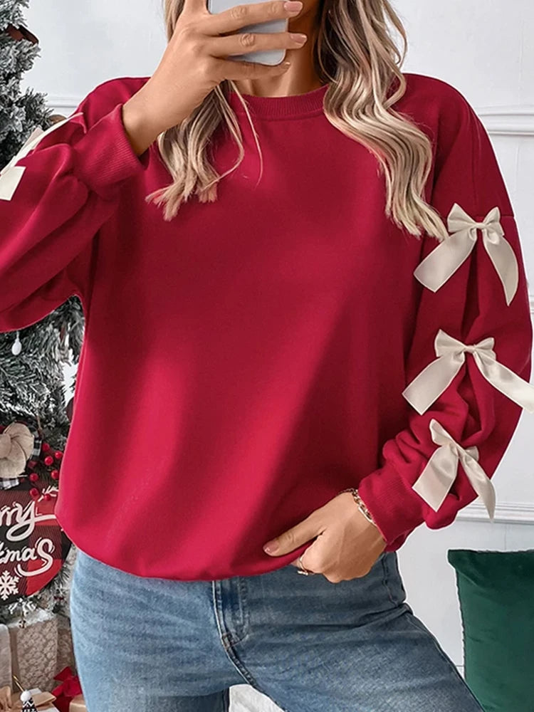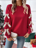 Women's round neck Christmas Sweatshirts with bow