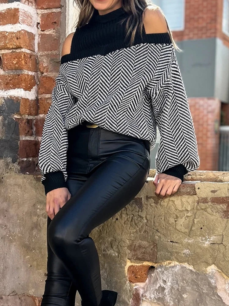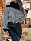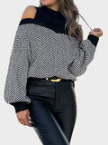Women's Striped Cold Shoulder Oversized Sweaters