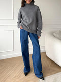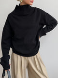 - Features - Stay cozy in this soft, stretchy turtleneck sweater—crafted from premium knit fabric for warmth and comfort. Its high-low hem and oversized fit add stylish flair, while the versatile solid color pairs easily with any outfit. Perfect for work, weekends, or nights out.
